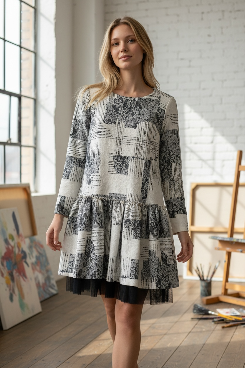 Materjal- ei ole märgitud aga paksem riie, all pits